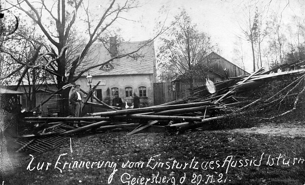 Der Turm stürtzte übrigens am 10. November 1921 wegen Baufälligkeit ein (nachfolgendes Bild).