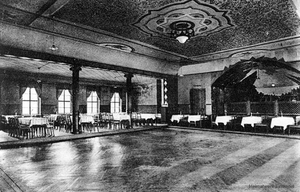Nachfolgend ein Blick in Gaststube und Saal des Lehngerichts um 1930. (Ausschnitte aus Postkarten, links Jürgen Fritzsche, rechts Sammlung Parthey)