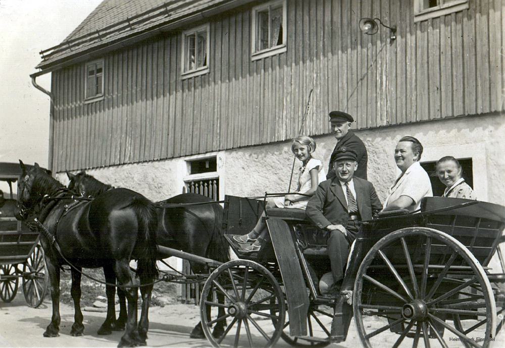 Foto um 1930, wahrscheinlich – wenn auch nicht erwiesen – in Berbisdorf aufgenommen. (Der Kutscher ist nicht bekannt.)