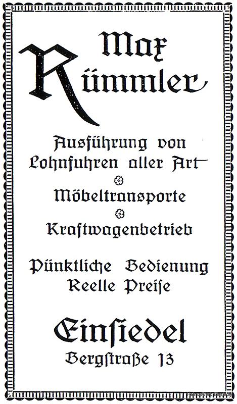 Nebenstehend eine Annonce von 1994 aus der Broschüre „Gemeinde Einsiedel, Landkreis Stollberg“.