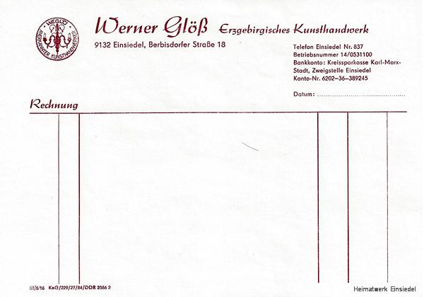 Im November 1956 kaufte der am 13. Juni 1924 in Heidelberg (Seiffen) geborene Werner Glöß das Grundstück von den Erben Max Hofmanns und übernahm damit auch die Drechslerwerkstatt.