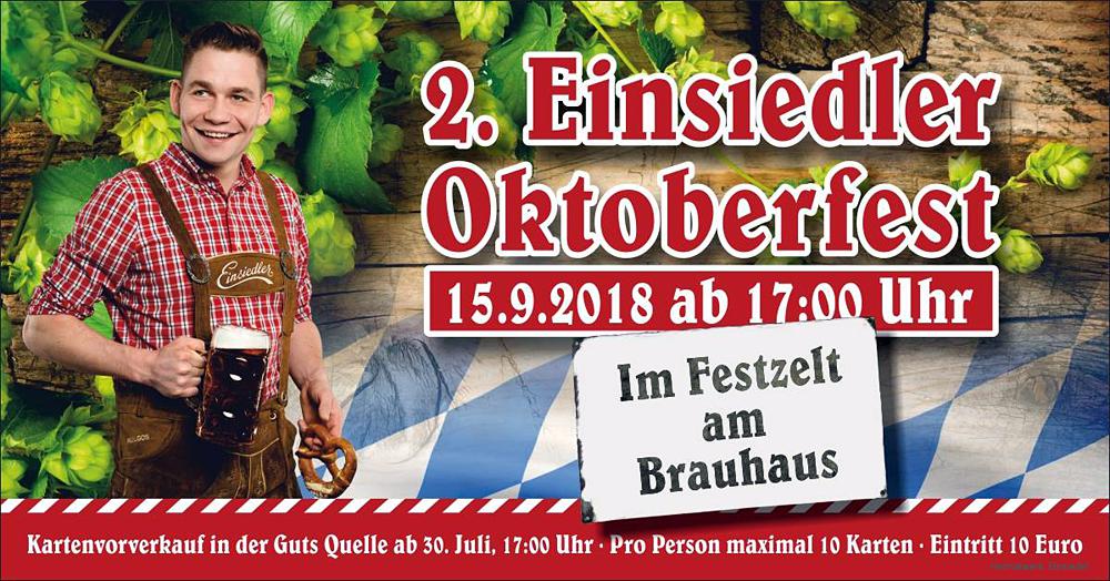 Am 16. September 2017 startete das „1. Einsiedler Oktoberfest“. Die Veranstaltung war aufgrund des ungeheuren Zuspruchs ein großer Erfolg und wird in den Folgejahren fortgesetzt.