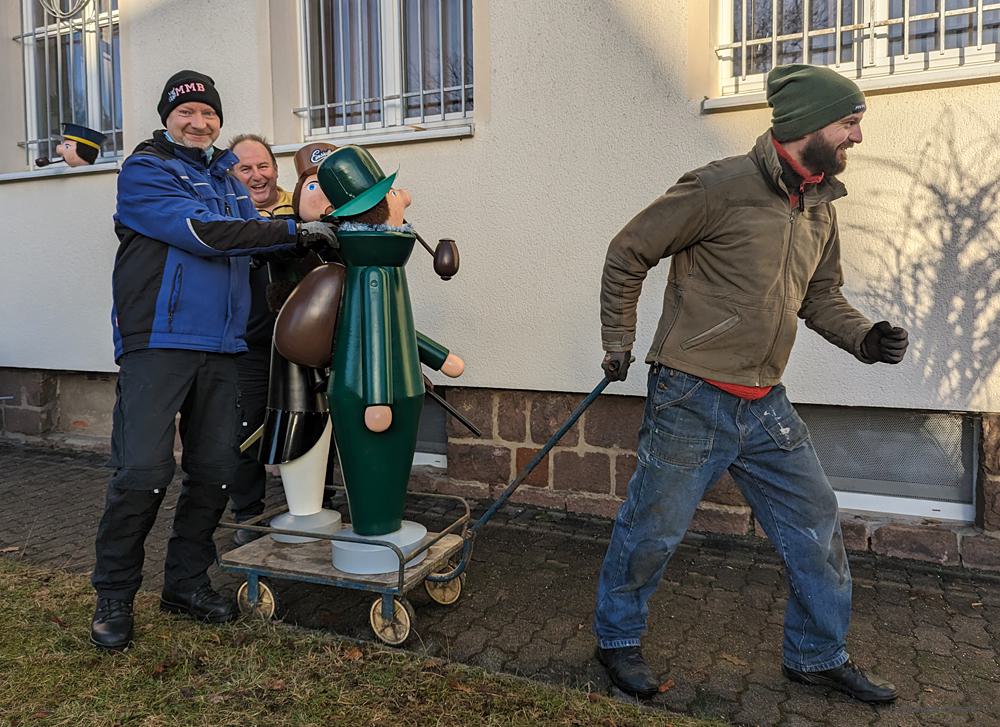 Die Figuren waren am 1. Februar demontiert und am 3. Februar wie geplant zu einer Fachfirma nach Gahlenz zur Restaurierung gebracht worden, d.h. sie werden nicht ersetzt, sondern komplett „aufgehübscht“. 🙂