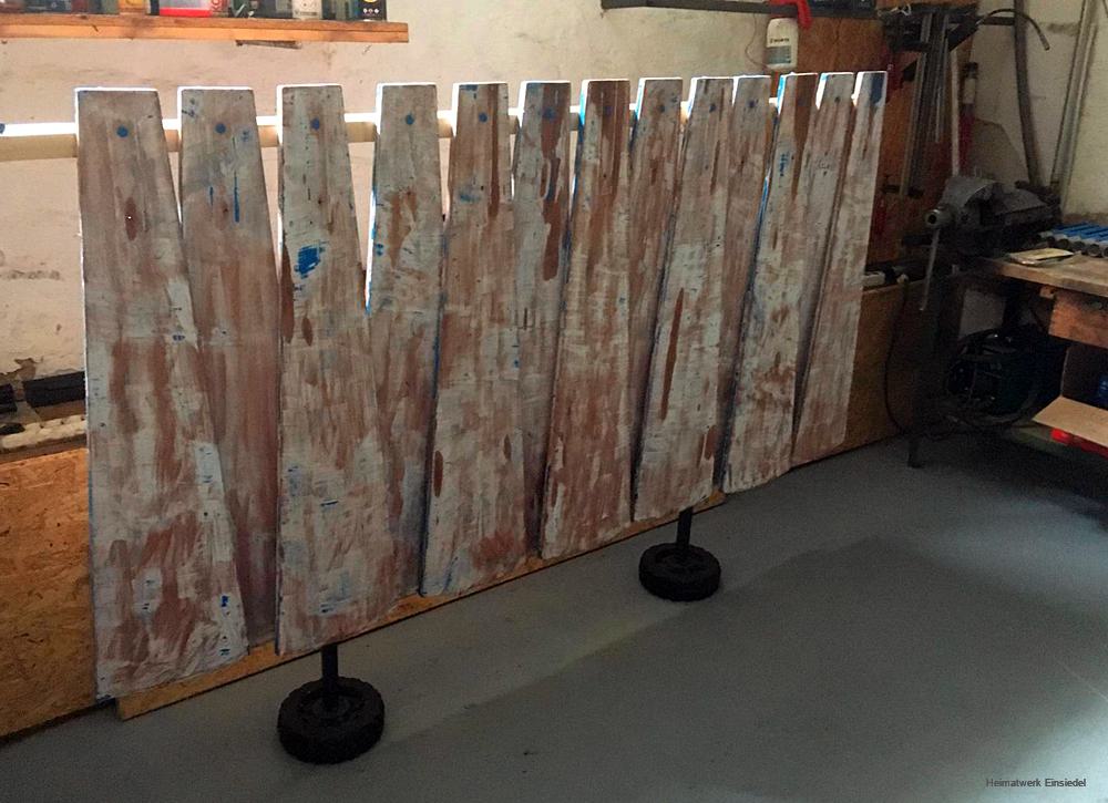 Vor dem Erfolg hat Gott den Schweiß gestellt. So ist es auch mit unserer Pyramide. Der Regen statt Schnee in den vergangenen Jahren forderte seinen Tribut. Die Flügel mussten gestrichen werden und einige Schönheitsreparaturen waren fällig.