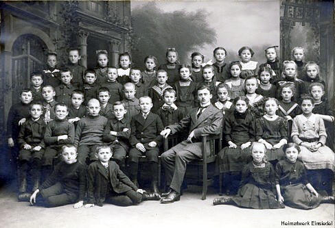 Zwei von unzähligen Klassenfotos, die im Laufe so vieler Jahrzehnte aufgenommen wurden. Beide stammen wohl aus den 1910er Jahren, die Anordnung, will sagen, die Gruppierung vom Lehrer in der Mitte, auf einem Stuhl thronend, umgeben von seiner Klasse, entsprach dem Zeitgeist.